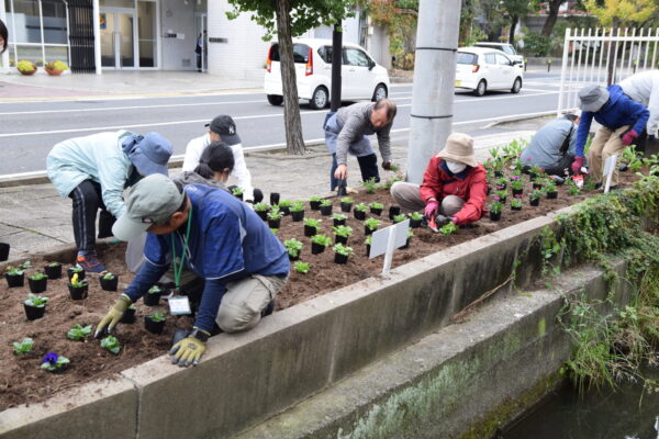 11月12日(水) 「みずがいえ」前の花壇に、新道みずがいえフラワーグループ の皆様とお花の苗を植えました。