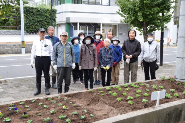 この花壇は、新道みずがいえフラワーグループとミズでお世話をしており、年に2回、春と秋にお花の苗を植えています。