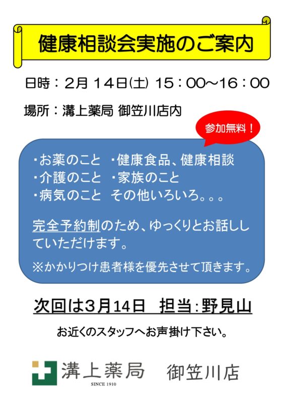 溝上薬局御笠川店にて、健康相談会を開催いたします!(無料)