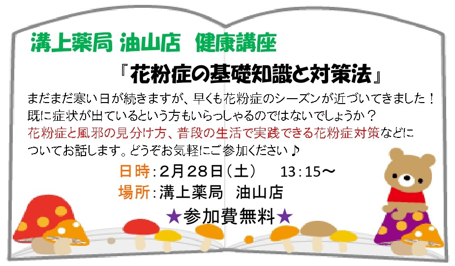 溝上薬局油山店にて、健康講座を開催いたします!(無料)