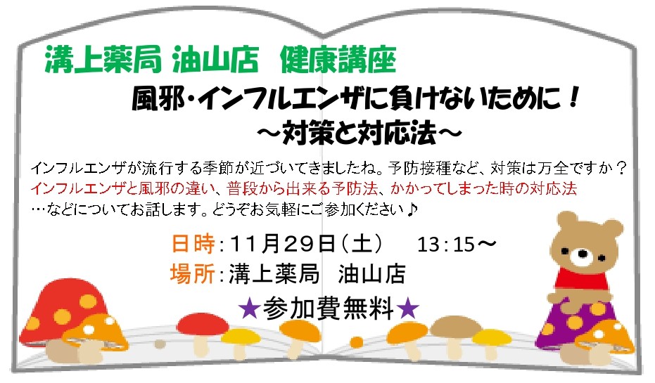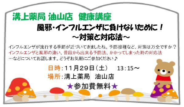 溝上薬局油山店にて、健康講座を開催いたします!(無料)