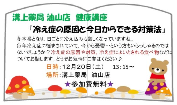 溝上薬局油山店にて、健康講座を開催いたします!(無料)