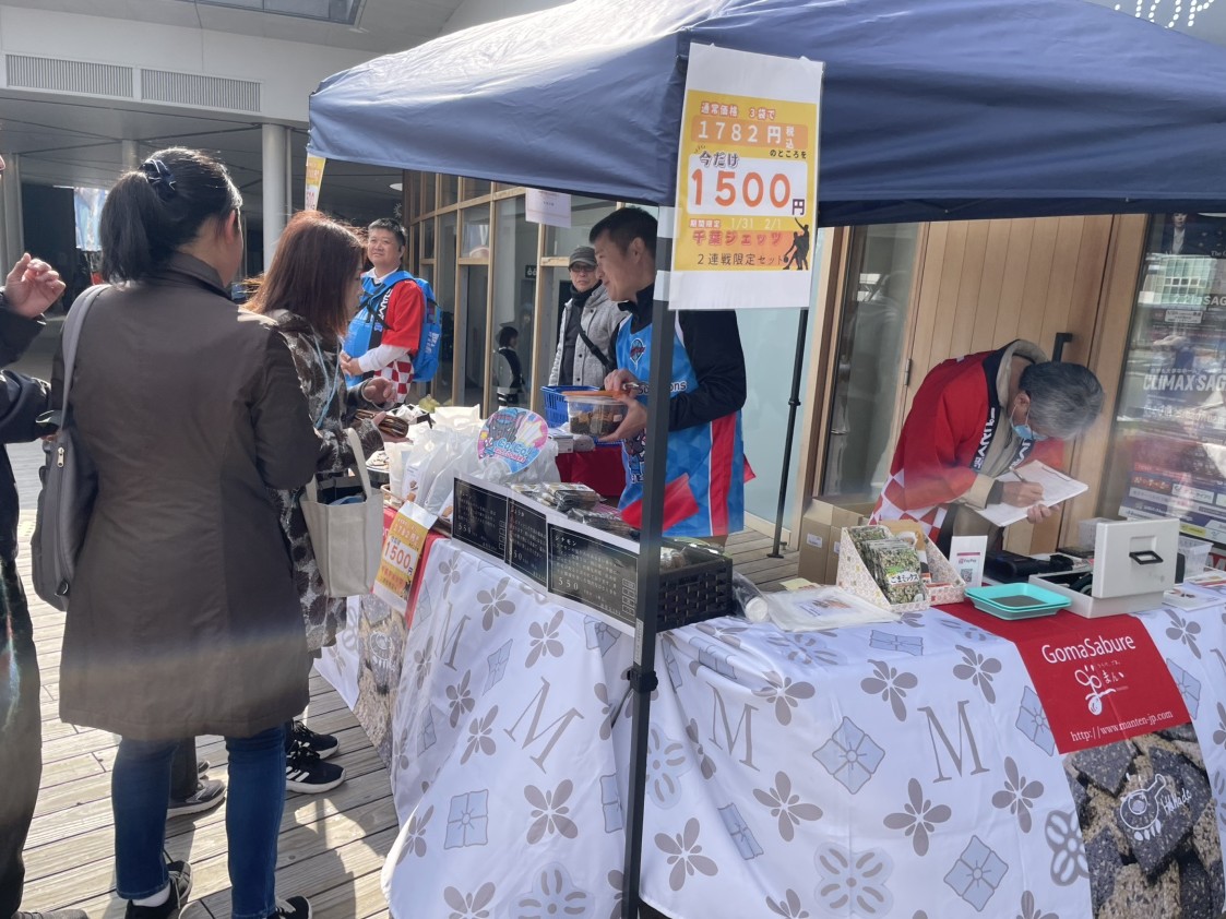 ㈱まんてん様とコラボした「ごまさぶれ」の試食・販売を実施しました。